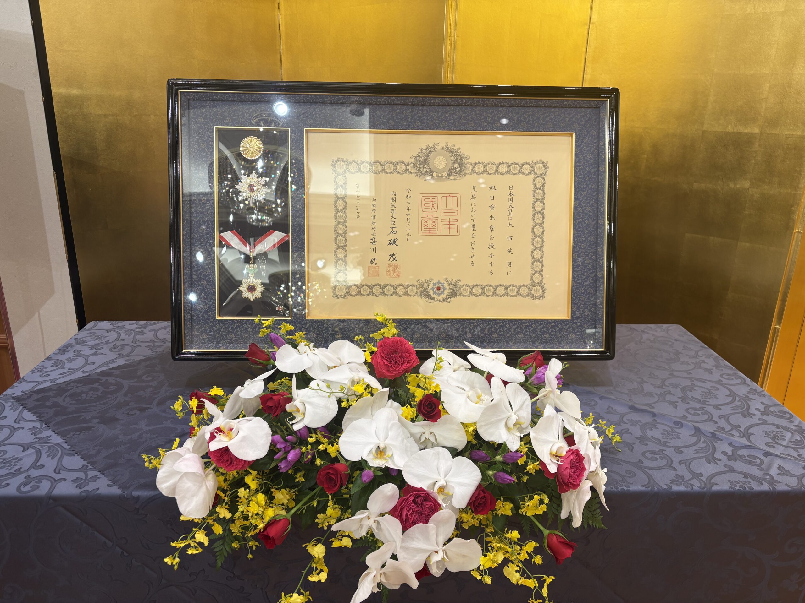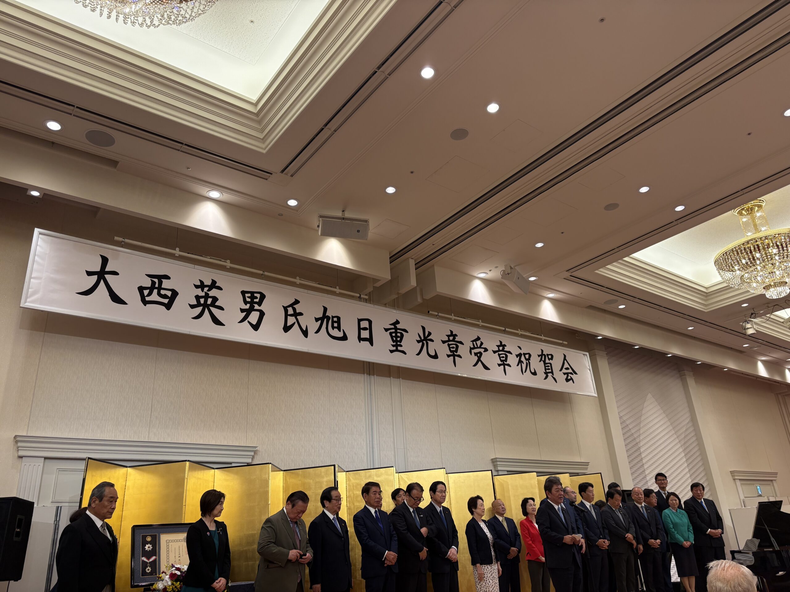 「大西英男氏旭日重光章受章祝賀会」が盛大に催されました。 大西英男先生《前衆議院議員》は 区議〜都議〜衆議院議員と50年にわたり着実に政界の階段を登り、江戸川区にあっては常に中心で活躍されてこられました。昨年の総選挙で議席を次男の大西洋平代議士に譲り勇退。その後も確かな実績と豊富な政治キャリアをもとに自民党江戸川総支部長として、私たちに適切な助言、ご指導をいただいています。 そんな大西英男先生の叙勲を祝い、タワーホール太陽の間は、総裁選を戦う茂木前幹事長はじめ国会議員、都議会議員、後援者の皆様方など500人を超える出席者で大いに賑わいました。区議会からは、私と同期の高木区議、福本区議はじめオール江戸川自民党で出席しました。 大西英男先生は「区議4期、都議4期、国会議員4期!50年の政治生活でやるべきことはやる!言うべきことは言う!信念を貫いてまいりました。実行する政治家こそ皆さんの大切な1票を託す価値ある政治家です。」と力強く挨拶されました。 おめでとうございます。 shinichi⌘