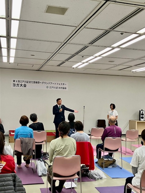 快晴の日曜日。9時水辺のスポーツガーデンで開催の第17回江戸川区地域交流フットサル大会」開会式で、大会会長として挨拶。小中学生による12チームが参加しての熱戦⚽️続いて「硬式野球江戸川ボーイズ」一年生大会を応援!江戸川ボーイズは2チームに分かれての参加で、勝利を目指します。昼からタワーホールに入り「第一回江戸川区文化芸術祭☆囲碁大会」開会式で囲碁連盟顧問としてご挨拶。定員を上回る300人の参加者❗️世代を超えての対局は熱く盛り上がりました。田島弘資理事長を先頭に、通年で開催する初心者囲碁講座が大会成功の土台となっています。その後、江戸川区文化芸術協会正副理事長会議が開かれ、協会としての企画や活動を話し合いました。昨日に続き華道展に多くの皆さまを迎え、お茶席では斉藤区長と私たち正副理事長が揃ってお抹茶を楽しみました。 17時文化センター「第一回文化芸術祭☆ヨガ大会」閉会式でヨガ協会相談役としてご挨拶。朝からの各クラスは満員🈵の盛況⭐️足立由喜子理事長の活躍と熱意が着実に成果となっています。 shinichi⌘