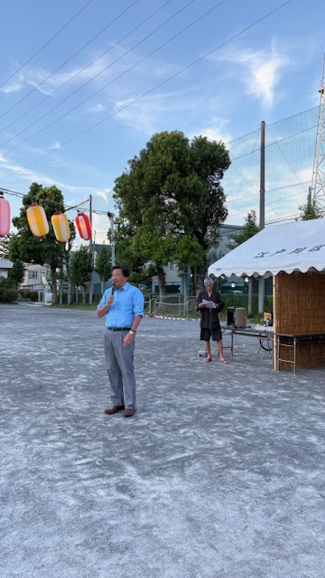 夏を満喫 2025年7月26日 21:37 最終更新日時 : 2025年7月26日 21:42 fshinchan 快晴の土曜日。来月2日の花火大会の準備が進む江戸川土手を早朝ウオーキング。そして「夏休みひとり巡回ラジオ体操」は四南自治会と下小岩&駅南自治会合同会場に参加。皆さまに朝のご挨拶をしました。 今夜は「上一色北町会盆踊り大会」はじめ本一色自治会、上一色中町会、上一色西町会の盆踊り大会に参加し、踊りの輪に加わり、皆さんにご挨拶。ラストは「豊山会暑気払い会」でカンパイ🍻暑い🥵1日を完走しました。 shinichi⌘