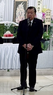 地元の南小岩神明町会副会長のご主人の告別式で哀悼の意をこめてご挨拶しました。故人は地域で古くから営業する工務店の3代目。藤澤家とも互いの先代から70年のお付き合いとなります。 職人気質の寡黙で心優しい方でした。安らかにお休みください。               合掌 shinichi⌘{CAPTION}