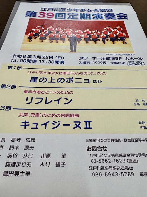 弥生三連休最終日は春の快晴。 臨海球技場フットサルコートで開催の「2026卒業記念フットサル大会」応援。江戸川区フットサル協会が、臨海球技場で運営するフットサルアカデミーを巣立つ選手たち。 新たなフットサルコートでの活躍を心から期待致します。 続いてタワーホールで「江戸川区少年少女合唱団第39回定期演奏会」鑑賞。手話を取り入れながらの〈江戸川区歌〉で開演🎵〈崖の上のポニョ〉など、美しい歌声を聴かせてくれました。小岩に戻り、西小岩での茶話会にお邪魔して、グリーンスローモビリティの現況などをお話ししました。 夜は私の後援会会長である植草誠ご夫妻と会食。商店街会長や町会副会長を務める他、ボーイスカウトや学校評議員など、地域の要職を務め、信望が厚い植草会長と明朗快活な恵美子夫人と楽しい時間をご一緒しました(^^)いつもありがとうございます😊 shinichi⌘