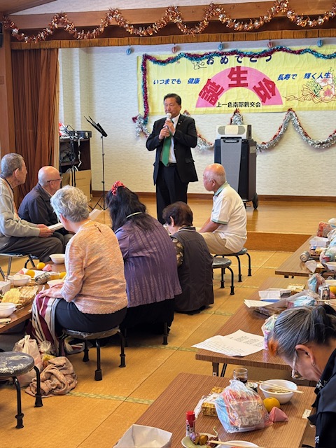 くすのき上一色南部親交会による「お誕生日会」にお招きいただきお祝いのご挨拶。8月〰️11月が誕生日月の皆さまおめでとう㊗️ございます。丸山会長のご配慮で11月生まれの私にも、大きな拍手とお祝いのお赤飯をプレゼントいただきました。感謝ですm(__)m タワーホールで開かれた「国際事務機株式会社設立五十周年記念式典」に出席。山田太熙代表取締役はじめ社員一丸での熱意と努力で厳しい事務機業界の荒波を乗り越え、確かな実績を築いてこられました。益々のご隆盛を祈念申し上げます。 小岩に戻り「喜楽会」に出席。 今日は塩野谷副会長の誕生日(^^) 賑やかにカンパイし、締めくくりは会の愛唱歌「ひょっこりひょうたん島」を全員で大合唱しました(^^)v おめでとうございます㊗️ shinichi⌘