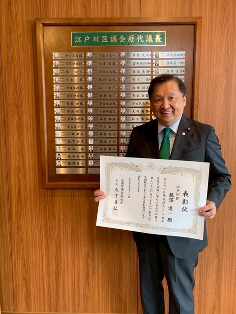 本会議に先立ち、全国市議会議長会からの「表彰伝達式」が行われました。私は「区議会議長4年表彰」そして「社会的孤独・孤立問題に関する特別委員長」並びに「国と地方の協議の場等に関する特別委員」を務めたことへの感謝状を拝受しました。 全国のステージを経験出来たことは、大変貴重な経験でした。 関係されるすべての皆様方に心から感謝申し上げます。 ありがとうございます。