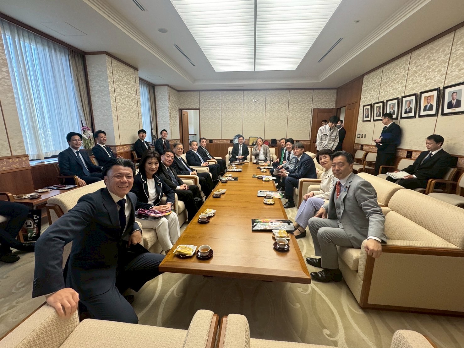 「東京二十三区清掃一部事務組合議会・特別区競馬組合議会による現地視察」今日と明日、一泊二日の行程で東京二十三区の区議会議長による特別視察が実施されます。早朝、羽田空港を飛び立ち能登空港着。 「輪島ソフトボール場廃材第一置き場」を視察。公費解体率は63%となり、現在も4000人以上の作業員が解体作業にあたっています。 山積みされた災害廃棄物を前に、改めて自然の猛威、被災状況の凄まじさを知りました。その後も、バスで市内走行中、車窓からブルーシートが屋根にかけられた家、仮設住宅、半壊家屋や道路補修現場などを見て、昨年元旦に発生した能登半島大地震、秋の集中豪雨災害について、関係者から詳細な説明をいただきました。輪島市内の廃材集積場を視察。16時石川県庁を表敬訪問。 安居知世金沢県議会議長に特別区議長会からの義援金を手渡しました。 金沢の伝統工芸の匠が織り込まれた広々とした議場を見学し、「清掃一部事務組合議会」としての視察を無事に終えました。夜は地元の金沢市議会喜多浩一議長を迎えての意見交換会で親睦を深めました。明日は私が議長を務める「特別区競馬組合議会」としての現地調査が実施されます。 shinichi⌘