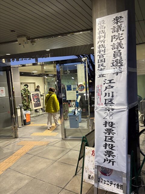 12日間にわたる衆議院選挙は終わり、今日は投開票日。 昨夕からの降雪で厳しい冷え込みと積雪で投票率が心配されます。 今回、いままで投票場であった旧下小岩小学校が解体工事中で使用不可のため、初めて南小岩コミュニティ会館を使用しました。投票会場について、私は選挙管理委員会と地元町会のパイプ役努めました。それもあってスムーズに投票が進む様子にひと安心です。それにしてもすごい人数です。