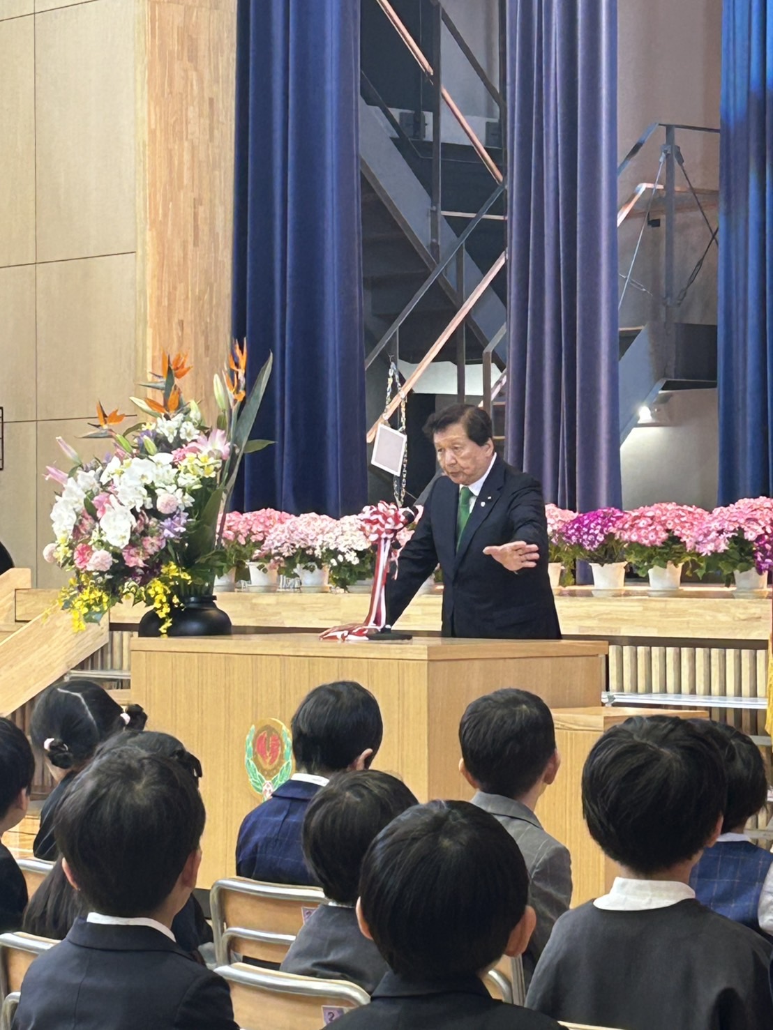 「江戸川区立下小岩小学校入学式」に参列。同窓会会長として、頬をピンク色に染めたかわいい79名3クラスの皆さんにお祝いのご挨拶(^^)90年余の下小岩小学校と60年余の歴史を持つ下小岩第二小学校が統合され、昨年春に新校舎が完成❗️新生下小岩小学校が誕生しました。今年度から、鶴田麗子前校長先生に代わり地主貴子校長先生が着任。下小岩小学校は、まさに新しい出発となりました。私たちは、これからも児童の健やかな成長と母校の発展に微力を尽くしてまいります。 ご入学おめでとうございます㊗️ shinichi⌘