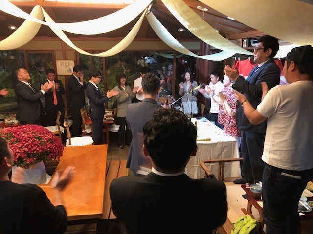高齢社会にあって、4クラブの会長によるスクラムは心強い限りです。私は「特別会員/相談役」として、皆さんの活動を応援してまいります。また、恐縮ながら、私が名付け親の大役をいただき、会の名称も「上一色一心会」と決定!新しいスタートを飾りました。そして、もう一ヶ所♪私の息子である「翔一と嘉織の結婚を祝う会」が、懇意にしている蕎麦の名店「更科」で開かれ、親としてご出席いただいた皆さんに感謝のご挨拶を申し上げました。