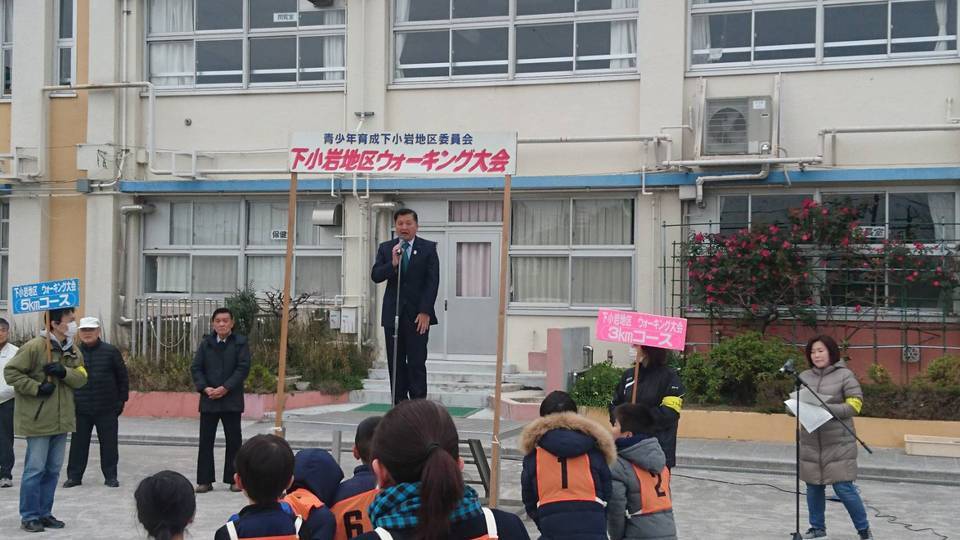 「第17回下小岩ウオーキング大会」開会式で挨拶。5㌔、3㌔の2コースを歩きます!寒さを吹き飛ばし、元気に出発(^^)