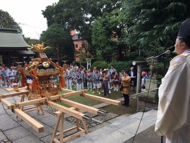 12時「小岩神社宮神輿完成奉告会」出席。鏡割りの輪に加わり立派な宮神輿の完成をお祝いしました。