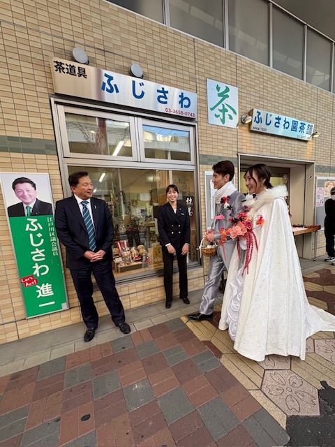 来春に完成予定の「東小岩三丁目公園」《仮称》は「例大祭、防災訓練、住民の憩いの場」など、二東町会待望の地域活動拠点として、期待が高まっています。今日は上野功町会長はじめ幹部役員の皆さんとの打ち合わせ。様々なご要望を前向きに検討中です。下小岩小学校「新校舎落成記念集会」に出席。4月に新校舎で新たな出発をした下小岩小学校は運動会や植樹式など、折に触れて「新校舎落成」を冠にした行事を実行してきました.今日の集会でフィナーレとなりました.在校生を中心に町会長や学校評議員の皆さんと祝意を共にしました。 葛西にある「東京ホテル・観光&ホスピタリティ専門学校」の卒業記念イベントとしてウエディングカップル👭がフラワーロードに登場💕商店街を歩いてフォトセッション(^^)です。素敵な2人に注目が集まりました。今宵の忘年会は小岩2ヶ所と浅草のお店でカンパイ🌟今年を振り返ると共に、昭和1:00年の歴史を語り合いました。寒さを増した帰途・・皆さまお大事にしてください。 shinichi⌘