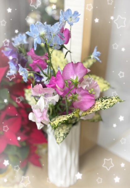 買って来たお花を花瓶に挿してくれました